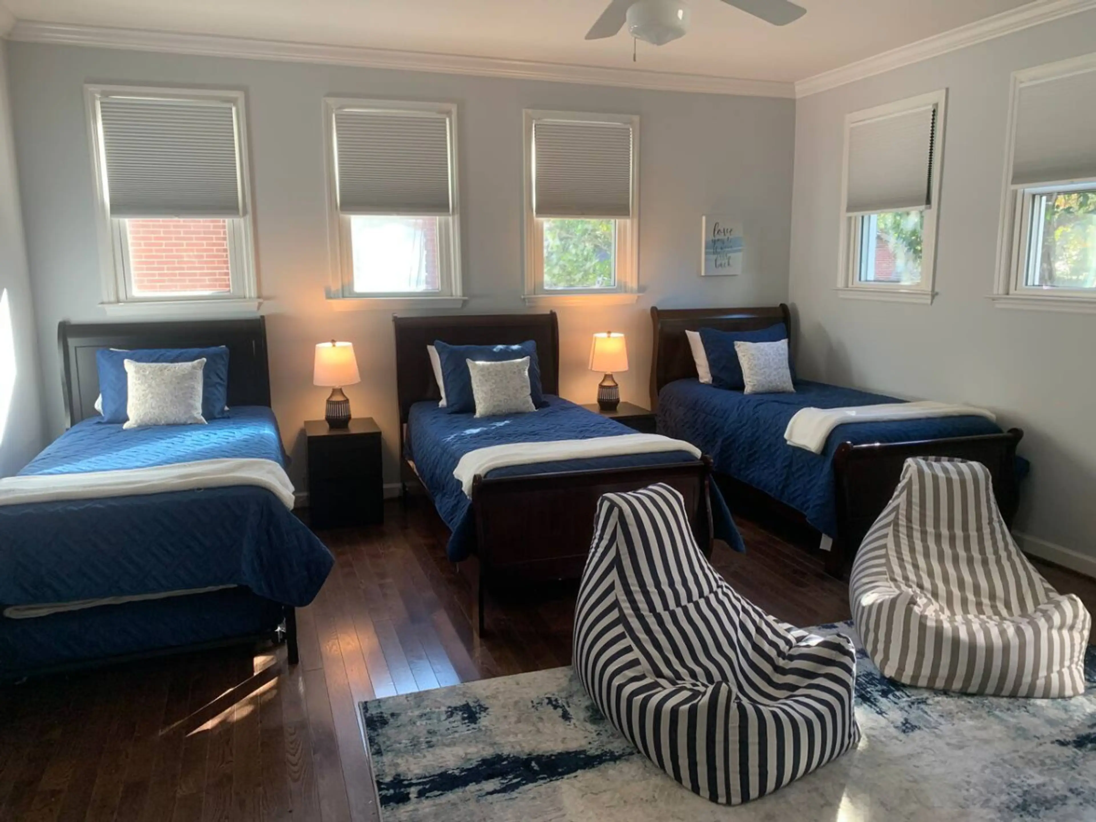 On the way to the property I received a text that there were no towels and that someone would be dropping them off before our arrival. We got there and the first thing we noticed was the Room Layout. The Listing was 5 Bedrooms - 1 King Room, 1 Queen Room, 1 Double Room, 1 room with 2 twins and 1 room with 3 Queens. We get there and the Double room is apparently a VERY SMALL Library style room with a Pullout Couch. We specifically booked this property because of the listing as we were 3 families each with 2 kids so that gave each set of parents their own room and the little kids and big kids could each share their own rooms. I spoke with the Property manager and the owner of the property - they were both very flippant about it that "they never had that complaint before". Whatever - we moved on... Then we were trying to find the "towels" - could not find ANY towels at all - mind you we were 12 people. So I called again about the towels and they said someone would bring them by. Before that person got there we found 4 towels (obviously not enough for all of us). Towel Lady showed up and hands us a garbage bag with the towels in it - OMG they REEKED of Cigarette Smoke! It was AWFUL!!! Thankfully we had Laundry detergent and we were able to wash them. ALL THAT SAID - I spoke with the Property Manager again and they issued us a 50% Refund and gave us a late check out - It was definitely a Rocky start to the weekend but it ended in a positive way and we had a nice time.